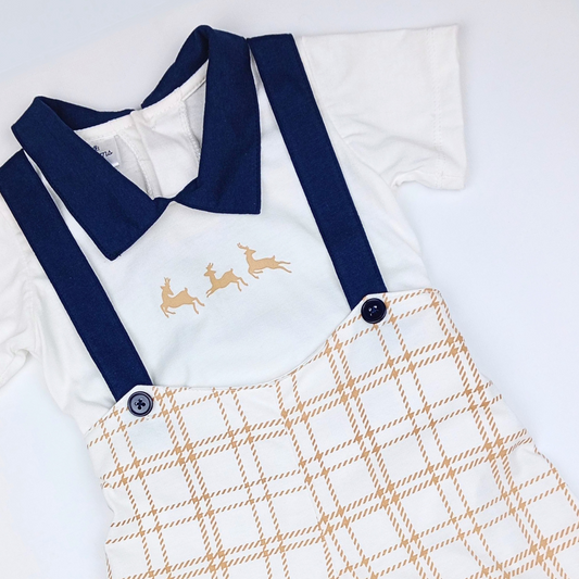 PLAIDS ONESIE & SUSPENDER SHORTS FOR INFANTS (3-12 MONTHS)